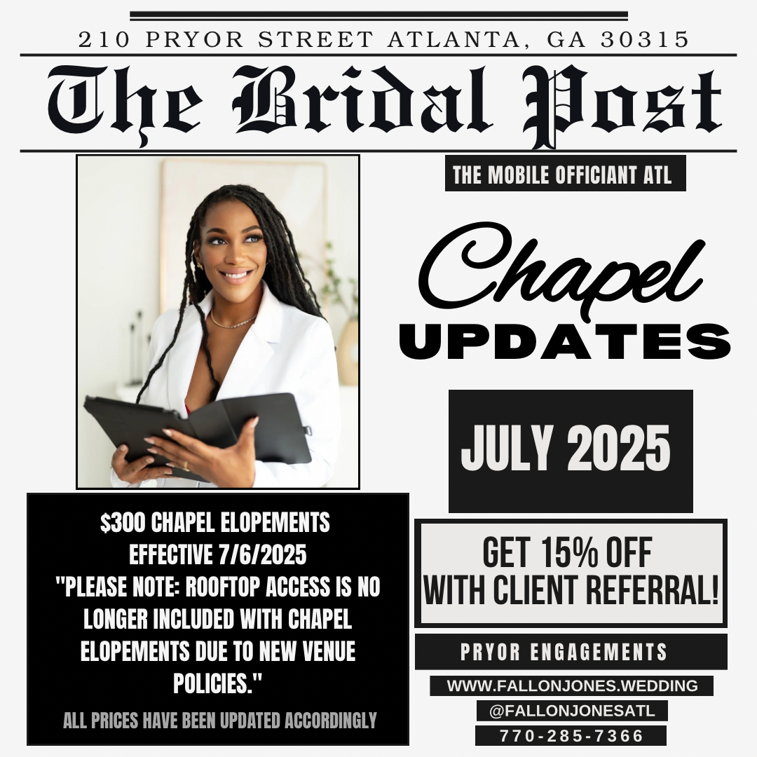 - Convenient location just one block from Fulton County Probate Court, perfect for couples seeking an easy and memorable ceremony.